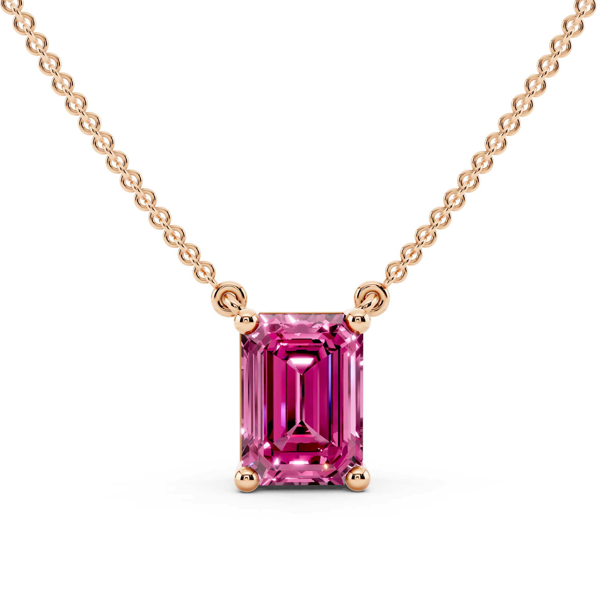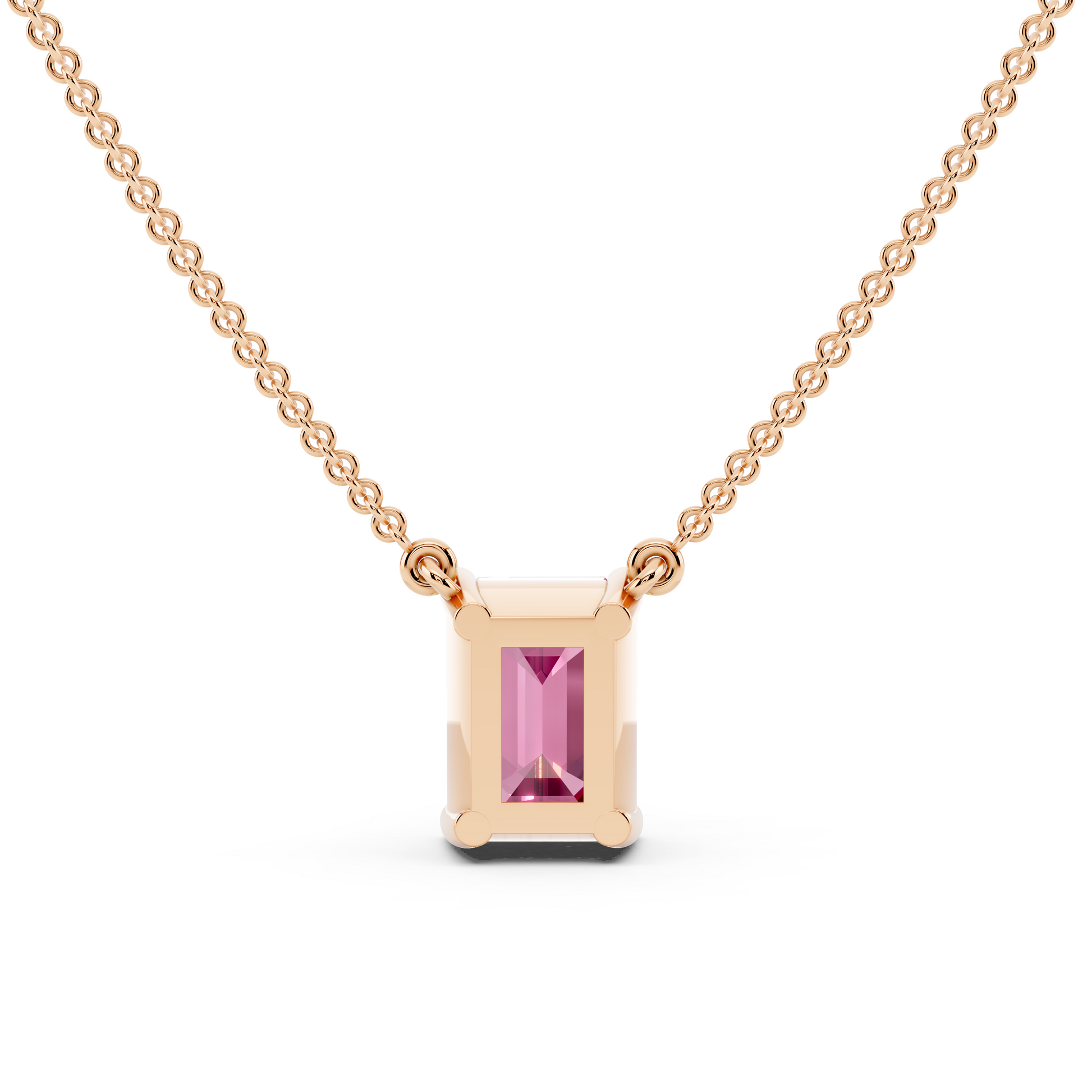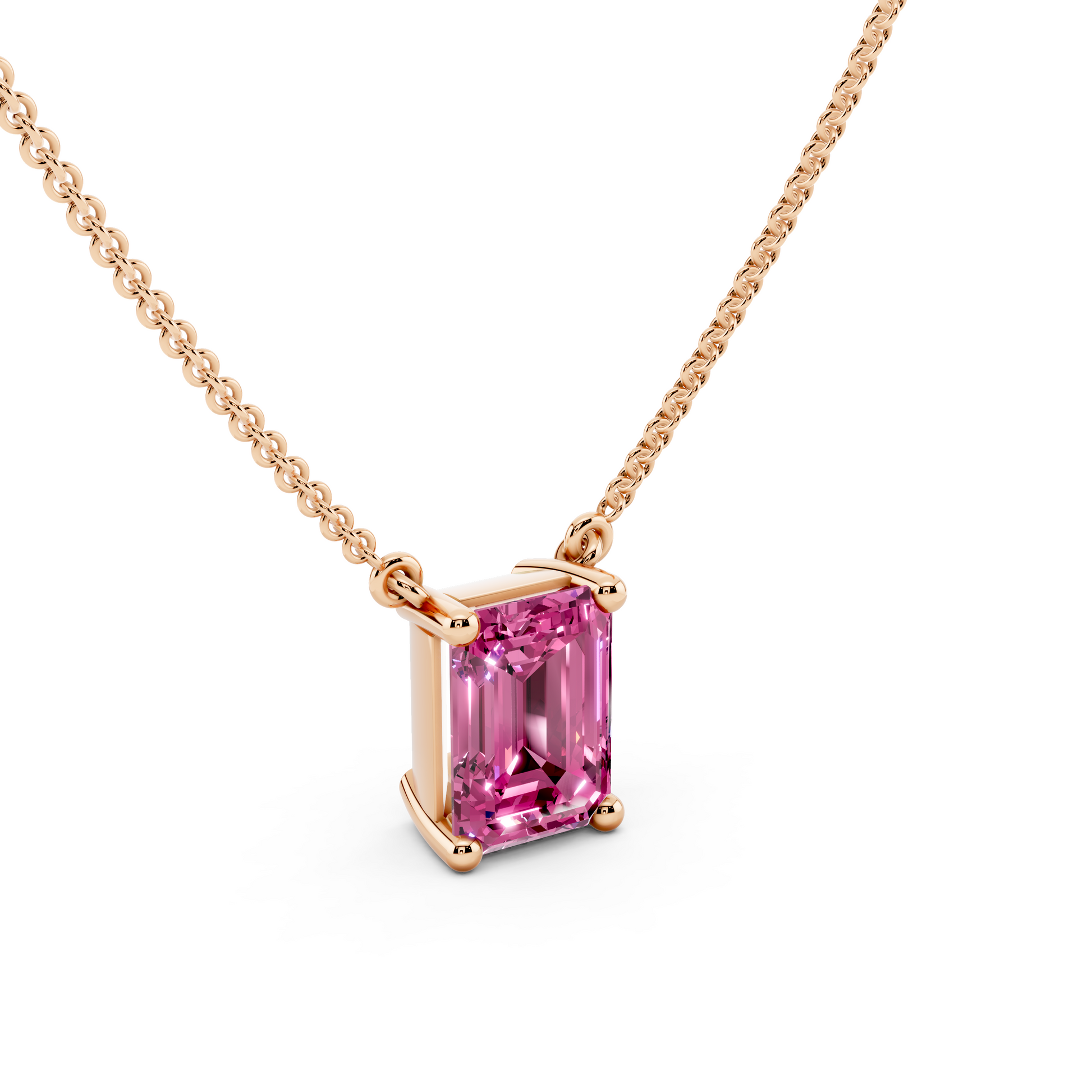 The Alignment Pendant features a step-cut pink sapphire suspended in perfect vertical balance. Its clean lines and restrained setting emphasize clarity, intention, and inner steadiness. Designed as a quiet statement, it reflects strength that comes from being grounded rather than loud.