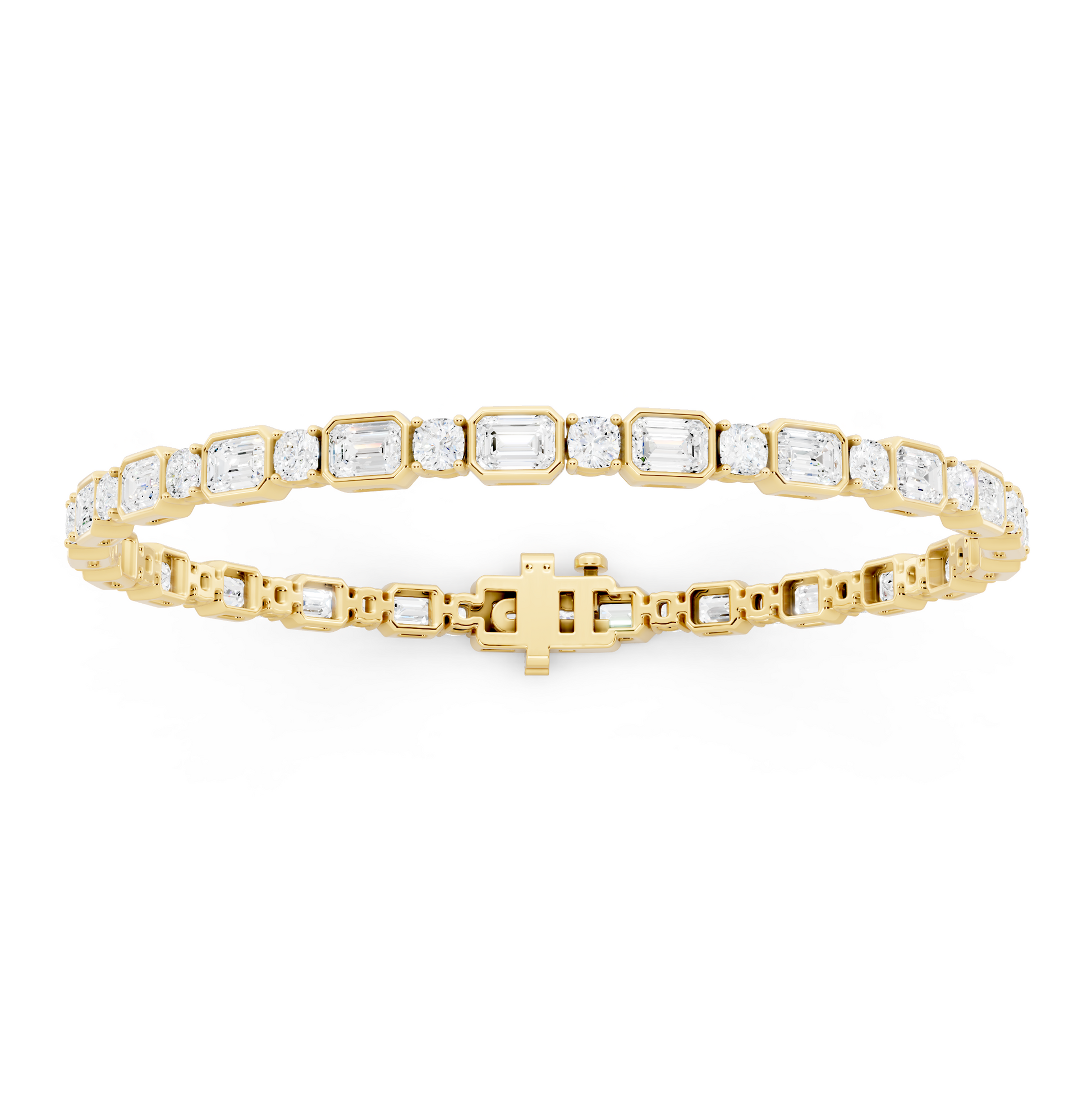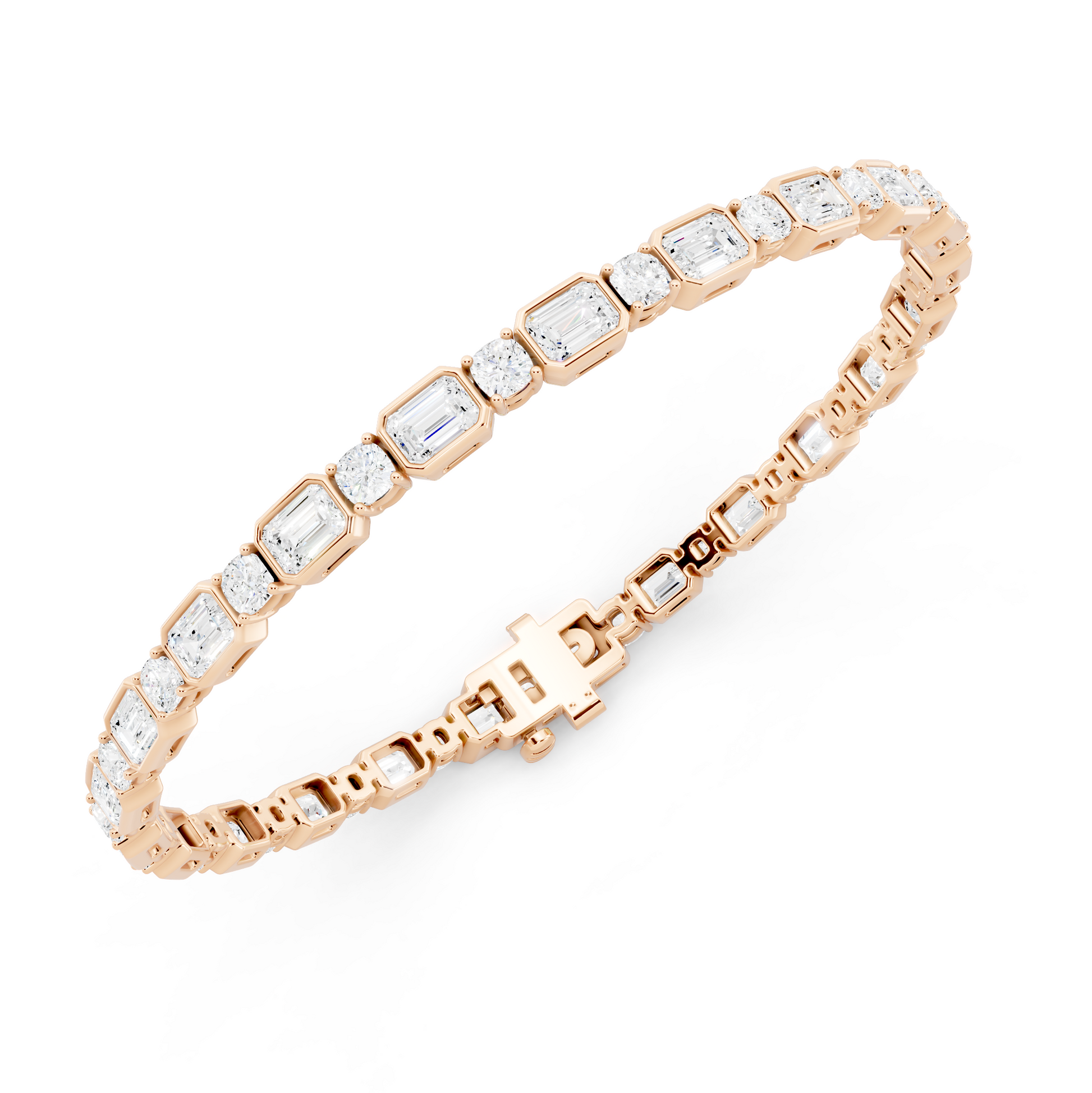 The Anchor Bangle is composed of alternating emerald and round diamonds, set in a deliberate rhythm that balances structure with brilliance. The contrast of shapes creates visual weight and clarity, giving the piece a sense of stability and intention. Designed to ground and steady, it represents strength that holds firm — even as everything else moves.