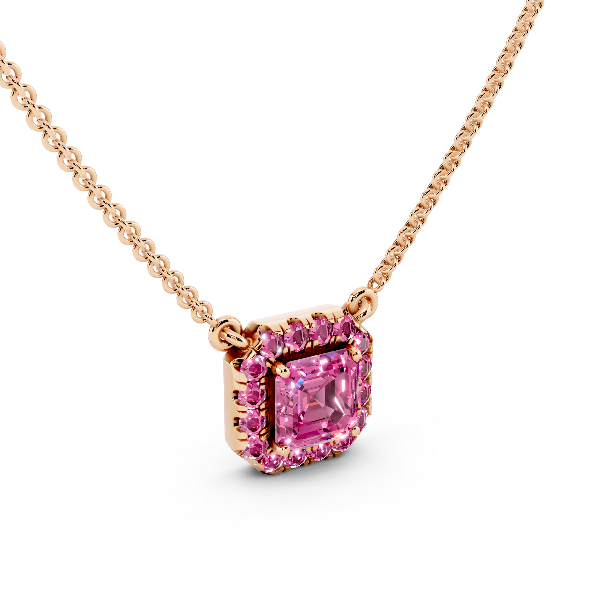 The Frame Pendant centers a step-cut pink sapphire within a structured halo that emphasizes precision and balance. Its architectural silhouette highlights restraint, clarity, and deliberate design rather than excess. A modern heirloom, it’s made for women who value strength expressed through structure.