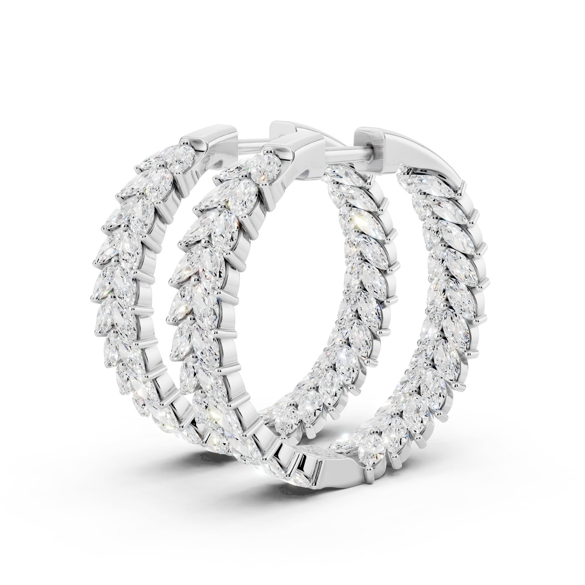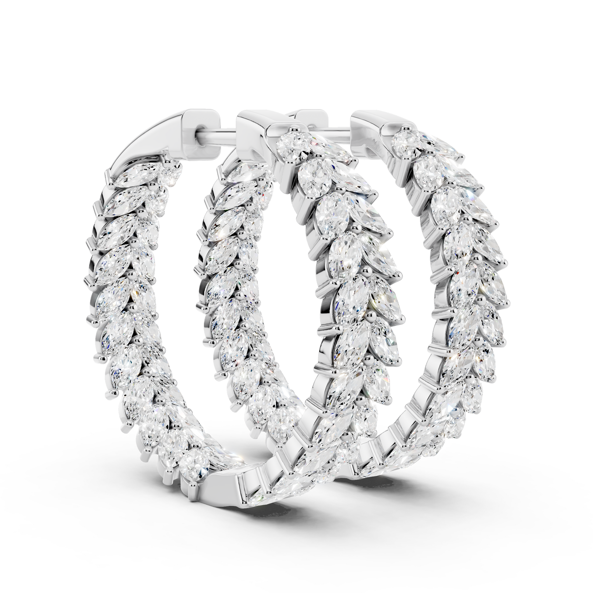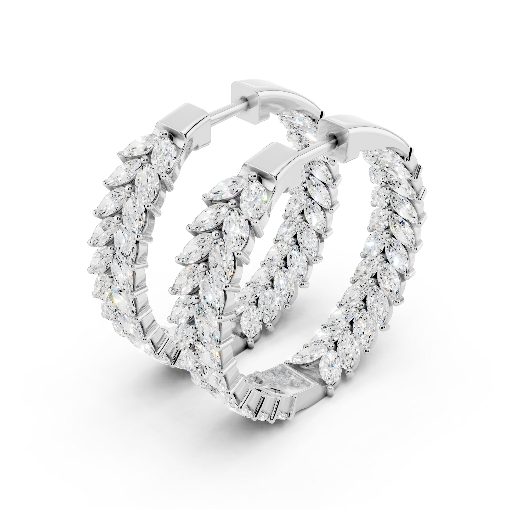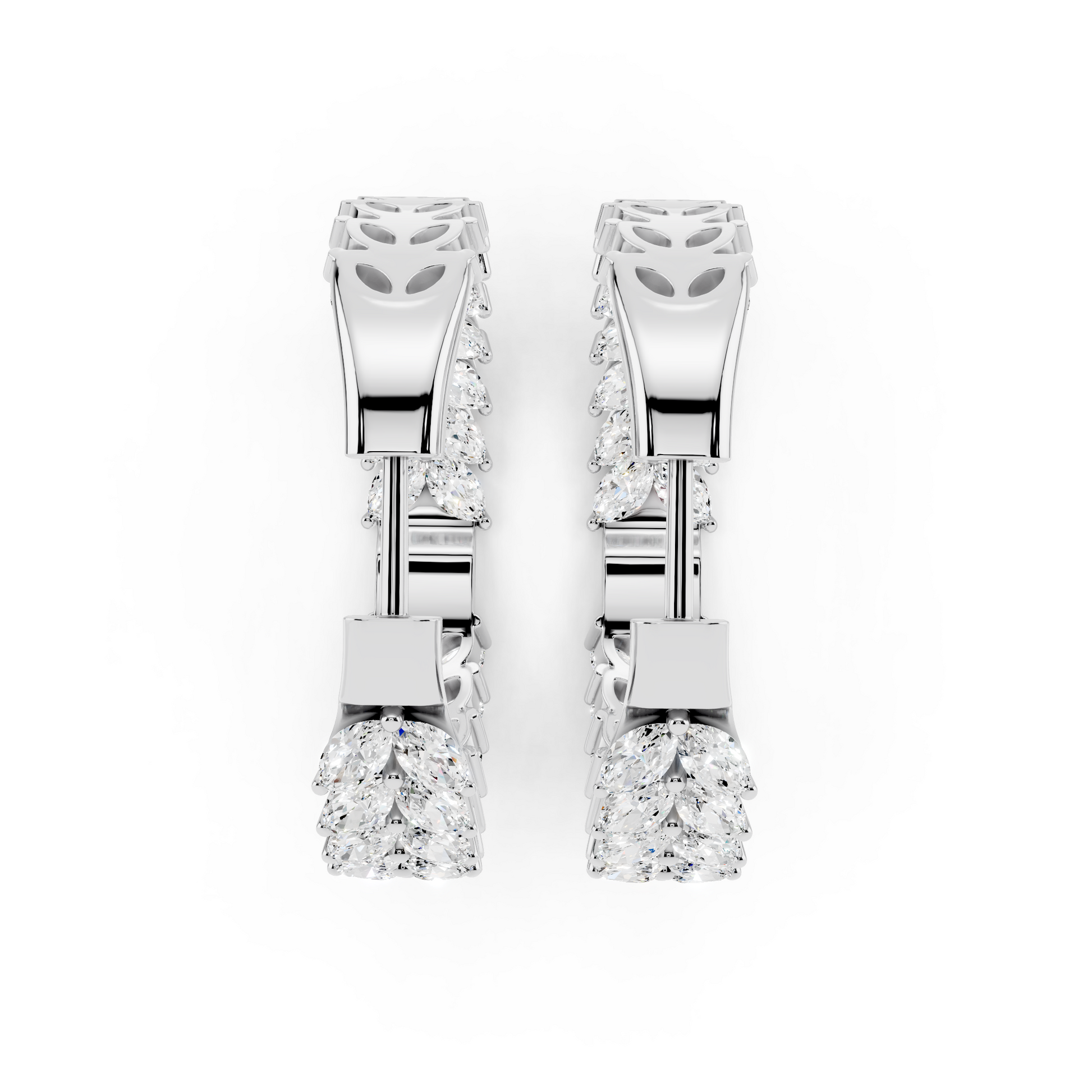 The In Formation Earrings features rows of marquise-cut diamonds arranged in a precise, architectural pattern. Each stone is intentionally aligned to create strength through repetition, movement through order, and brilliance through balance. Designed to represent alignment and forward momentum, these earrings embody beauty built with purpose.