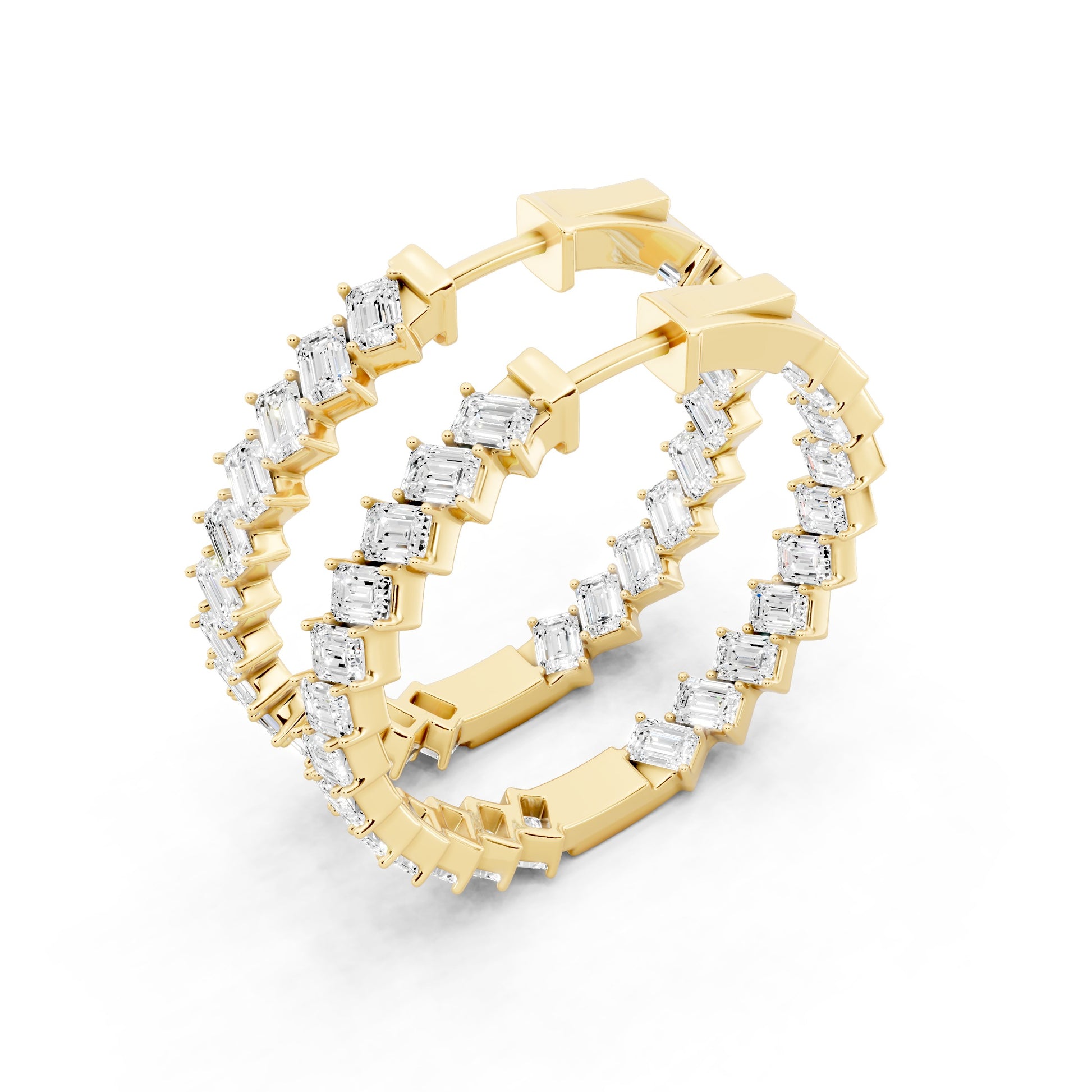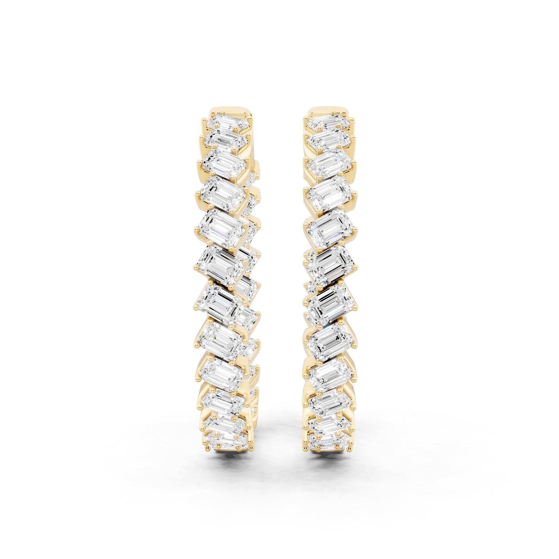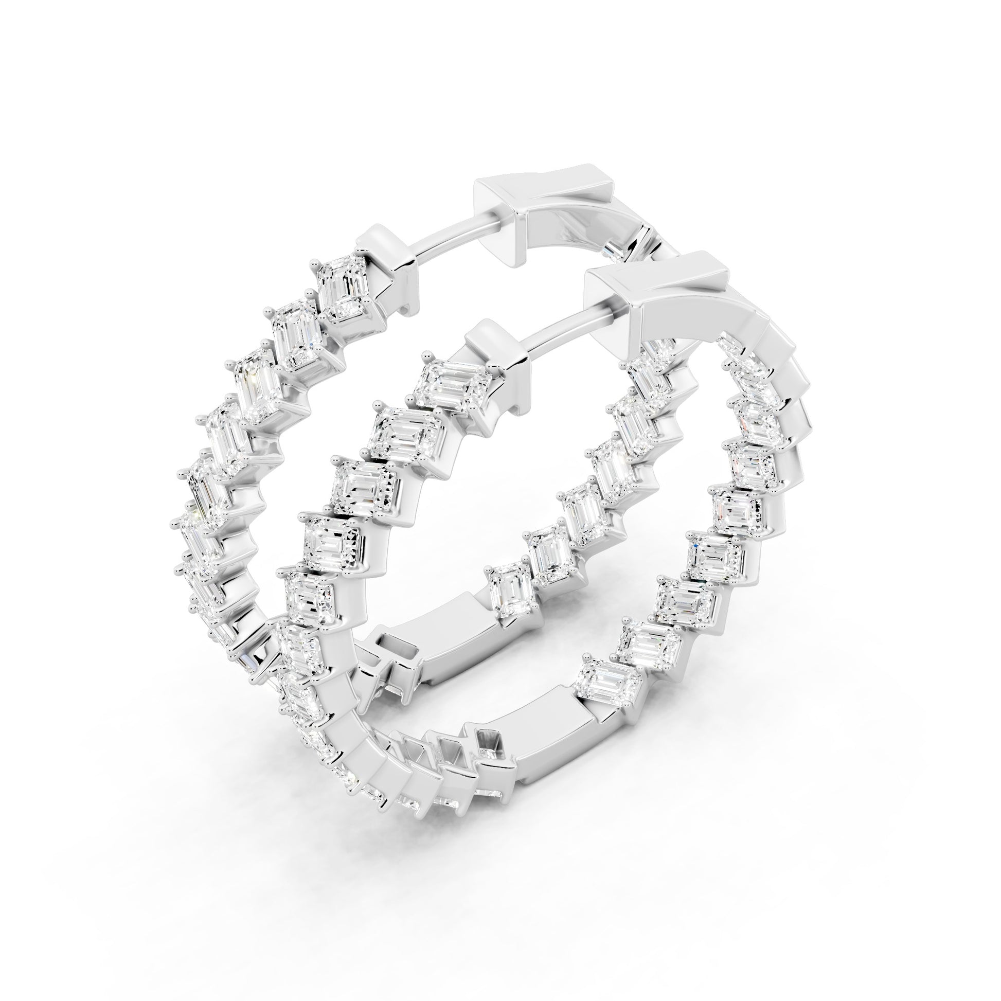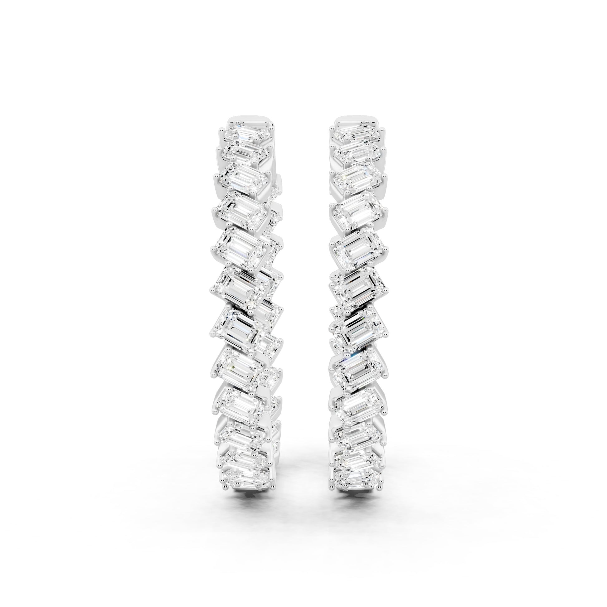 The Poise Emerald Cut Earrings feature a continuous line of emerald-cut diamonds, set to create a clean, composed silhouette. The structured geometry emphasizes clarity and restraint, allowing brilliance to feel intentional rather than excessive. Designed to remain centered and assured, it reflects confidence that is calm, measured, and controlled.